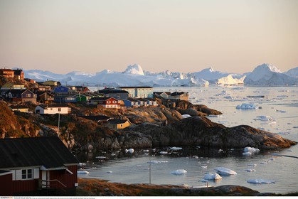 • GREENLAND / Ilulissat / A view over houses and the Ilulissat Kangerlua Glacier also known as Sermeq Kujalleq, Ilulissat, Disko Bay...© Yadid Levy / Anzenberger