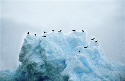 Antarctic Terns sitting on top of an iceberg in Paradise Harbour on the Antarctic Peninsula.