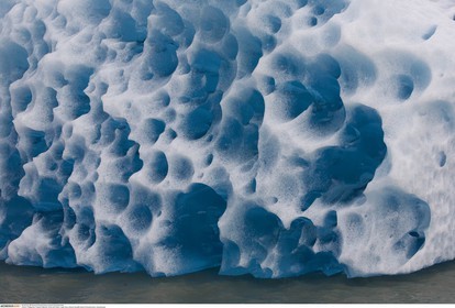 The side of an iceberg sculpted by wave action, Northwest Greenland