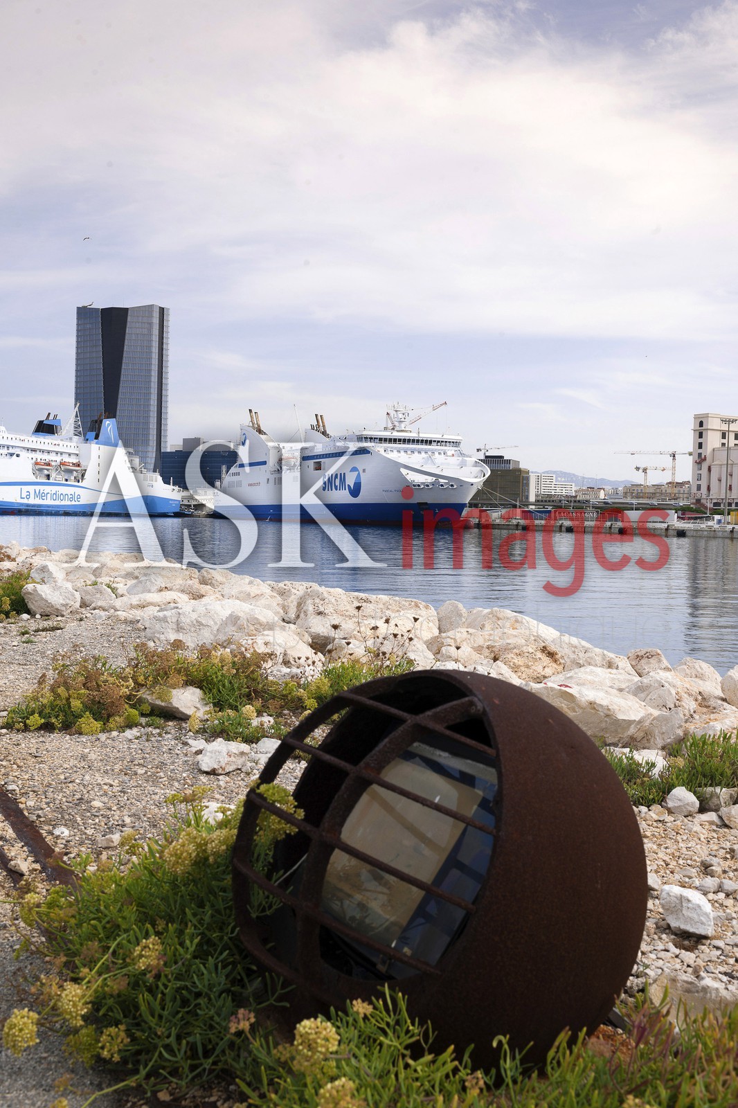 | Description | The ships of the SNCM company stationed in the Port Autonome de Marseille and CMA-CGM tower, Bouches du Rhone, France |