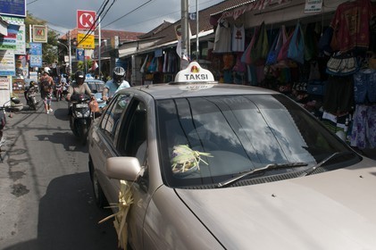 • Taxi in the Streets of Kuta. Indonesia, Bali, touristic streets of Kuta. Bali. Most of Lombok's south coasts offer surf-seekers challenging waves of various grades.