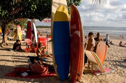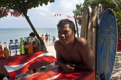 • INDONESIA / Bali / Kuta Beach / Posing for photos after a day of surfing ..© David Paul Morris / Anzenberger