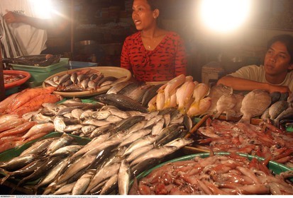 • INDONESIA / Bali / .A hawker sells fish at her stall in Pasar Badung, the open air market at Denpasar in Bali......© Prashant Panjiar / Anzenberger