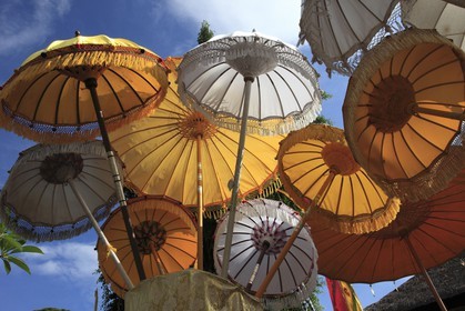 • Indonesia, Bali, Mas, temple festival, umbrellas, odalan, Kuningan holiday,