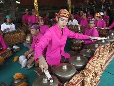 • Indonesia, Bali, Mas, temple festival, gamelan musicians, odalan, Kuningan holiday,