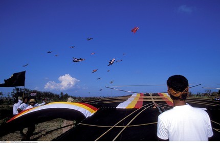 • INDONESIA / Bali..Bebean kite is launched in the air...© Yadid Levy / Anzenberger