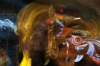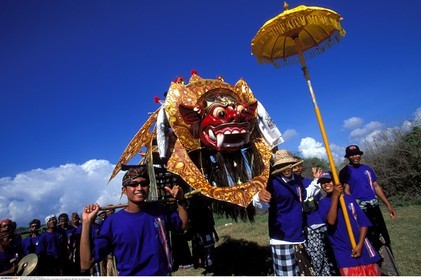 • Several young people play music and they disguised dragon through the streets of Ubud during the celebration of Galungan. Galungan festival, the most important of Bali, symbolizes the victory of Drama (virtue) over Adharma (evil).
