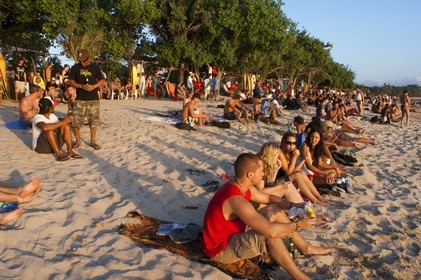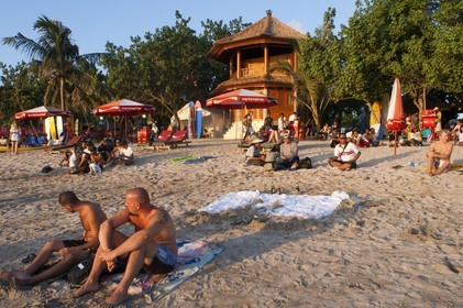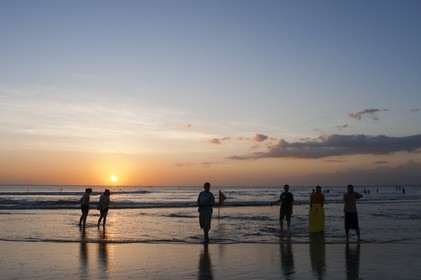 • Bali. Kuta is a coastal town in the south of the island in Indonesia. Sunset over sea with tourists