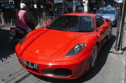 • Red porsche lamborghini in the Kuta Street. Bali. Indonesia.