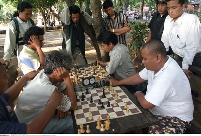 • INDONESIA / Bali / .Men play chess in the Puputan Square in Denpasar, Bali......© Prashant Panjiar / Anzenberger