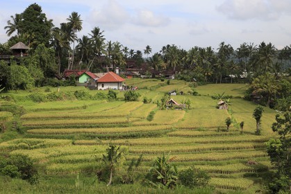 • Indonesia, Bali, terraced rice fields, farmhouses,