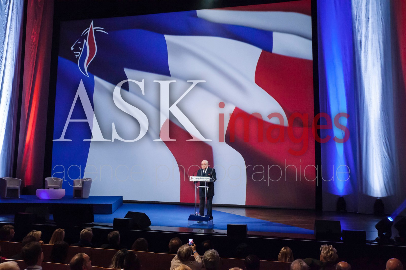 | Description | JeanMarie Le Pen, -President Honorary Chairman of Front National Parti at Front National Congress, Lyon November 2014 |