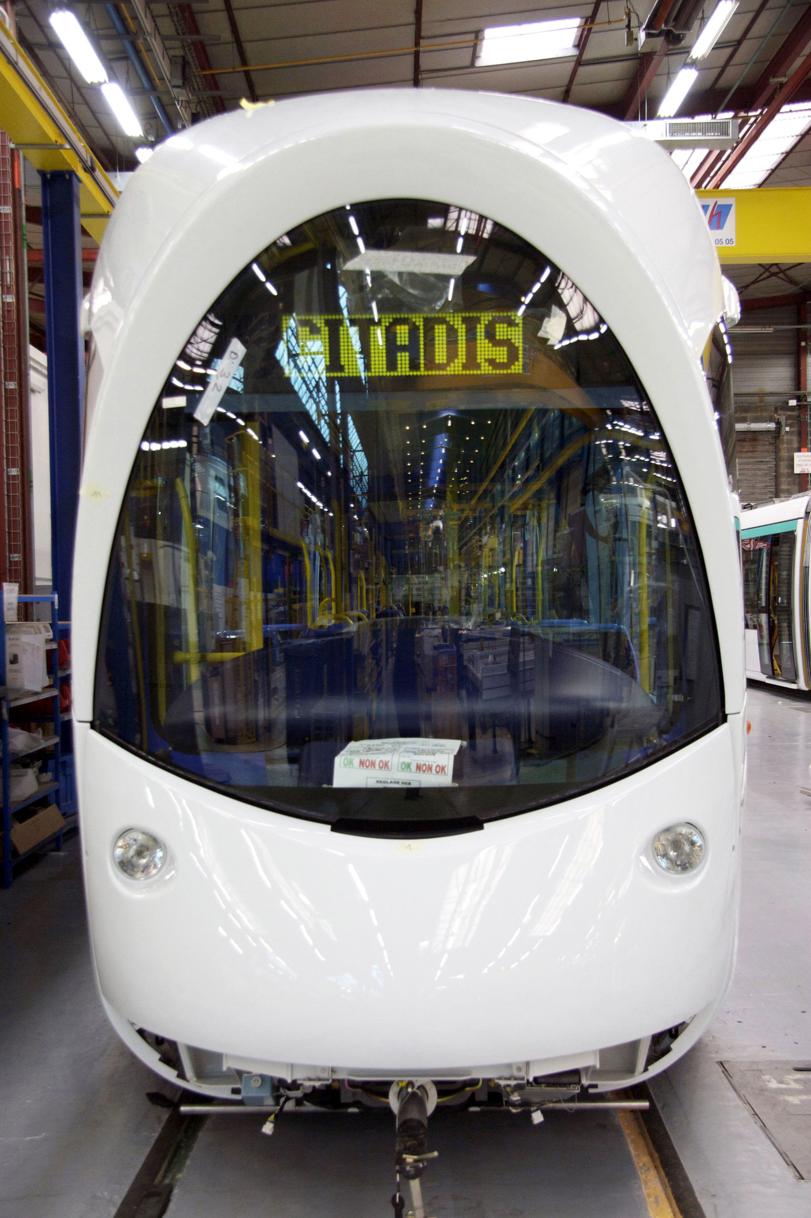 The front of a tram, Alstom factory, La Rochelle, Charente Maritime, France