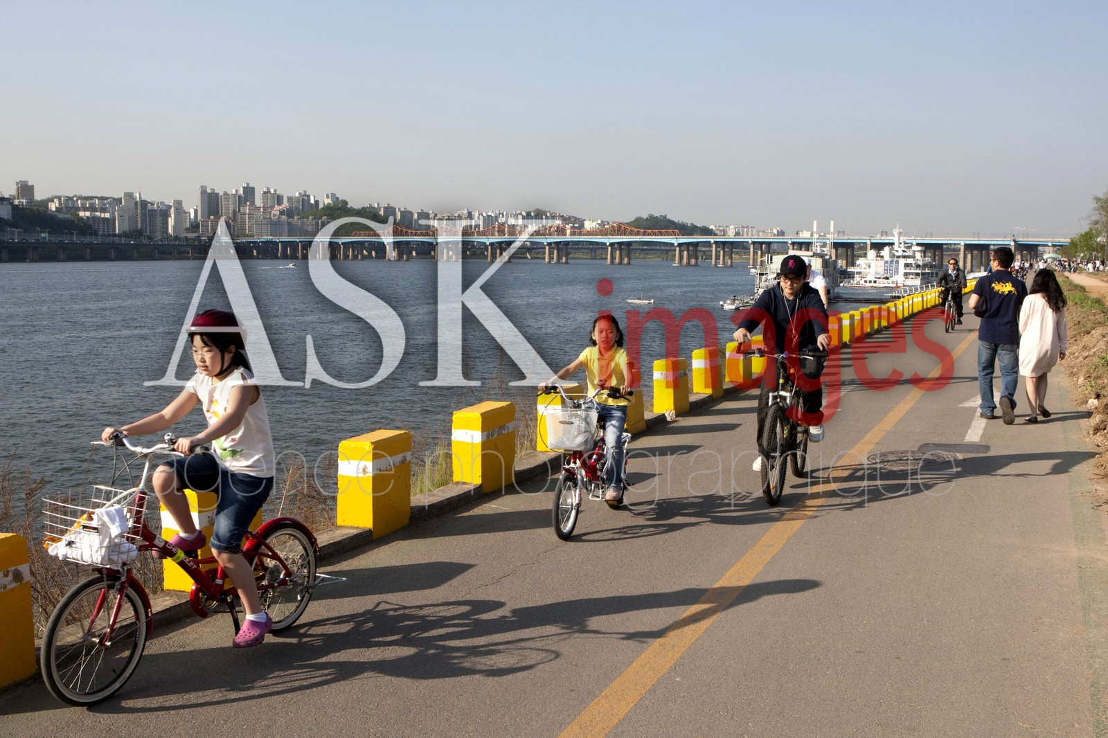| Description | SEOUL : COREE DU SUD *** Local Caption *** famille à vélos le long de la HAN RIVER |