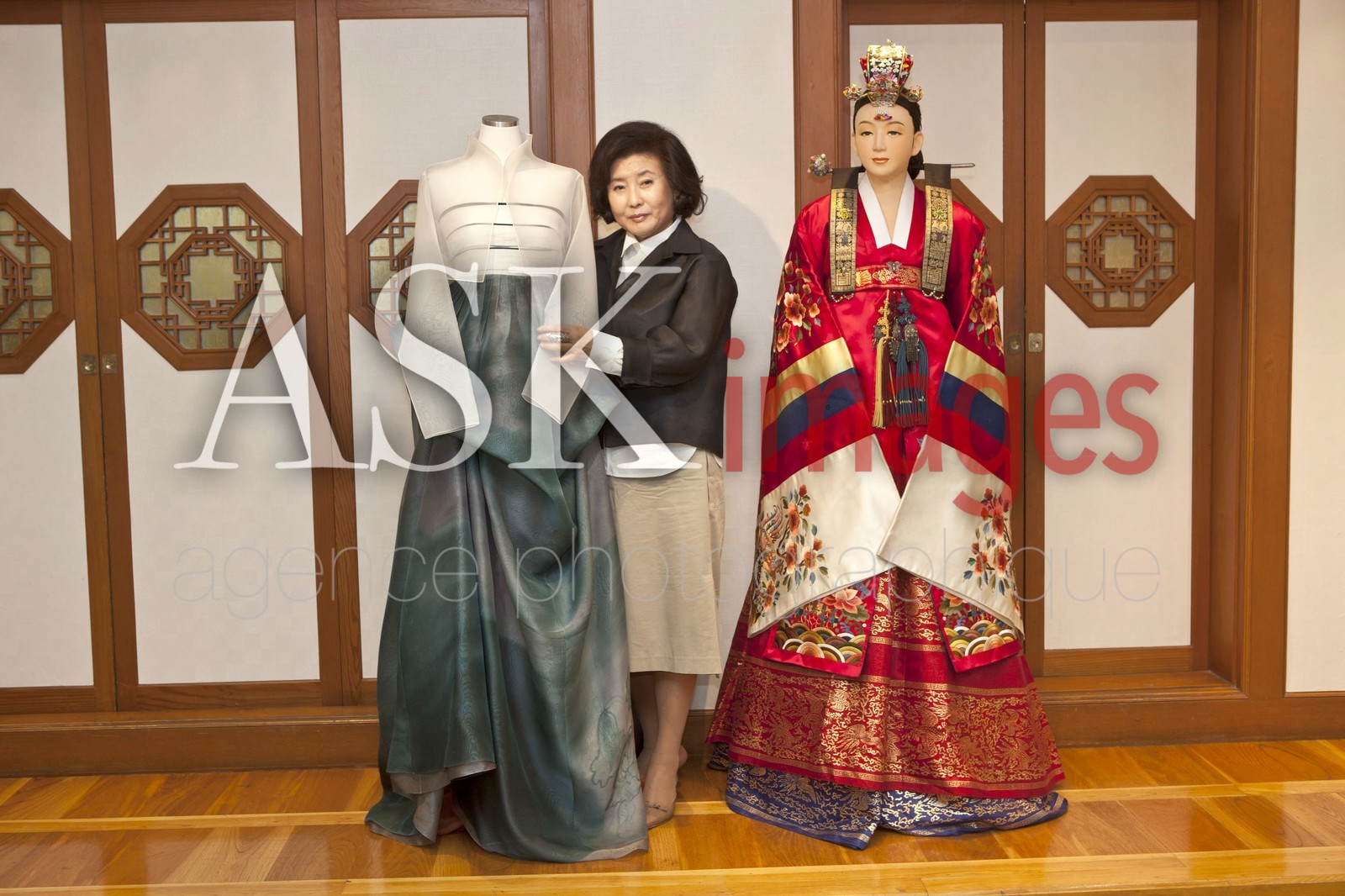 | Description | SEOUL : COREE DU SUD *** Local Caption *** LEE YOUNG-HEE ,pretresse de la mode coréenne,entre un hanbok et sa version contemporaine |