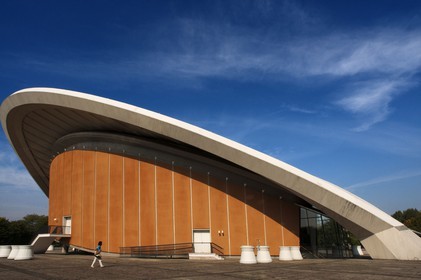 Haus der Kulturen der Welt, Berlin, Deutschland. The Haus der Kulturen der Welt ("House of the Cultures of the World") in Berlin is Germany's national centre for the presentation and discussion of international contemporary arts, with a special focus on non-European cultures and societies. It presents art exhibitions, theater and dance performances, concerts, author readings, films and academic conferences on Visual Art and culture.