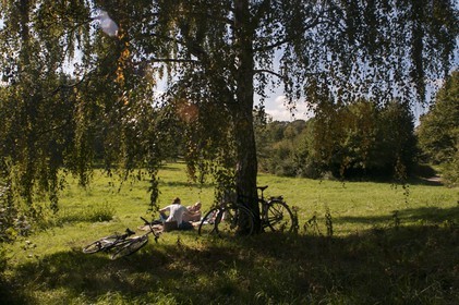 Relax at Schloss Charlottenburg gardens, Berlin, Germany. The Palace Garden, with an area ot 33 hectares, is an important monument of Garden architecture.