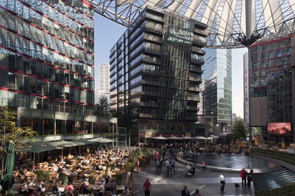 inside Sony Center at Potsdamer Platz in Berlin. Potsdamer Platz literally Potsdam Square) is an important public square and traffic intersection in the centre of Berlin, Germany