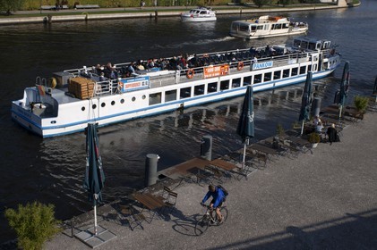 Boat excursion in the Spree river, Berlin. Spree, Landwehrkanal and Havel ‚ Berlin is crossed by a multitude of rivers and canals.
