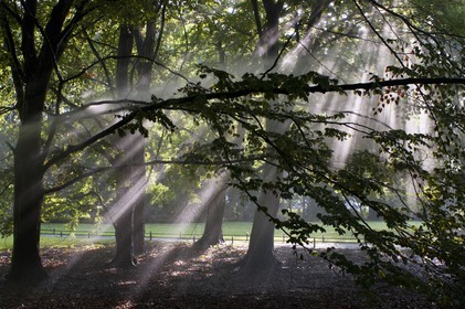 Sunlit foliage in Tiergarten ('Animal Garden'), Berlin, Germany. The Grosser Tiergarten, simply known as Tiergarten, is an urban public park of Germany located in the middle of Berlin, completely in the homonymous locality.