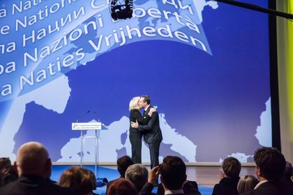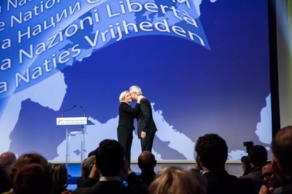 Marine Le Pen with Jiril Janecek President of Czesh OK Strana Parti during the Congress of the Front National, Lyon November 2014