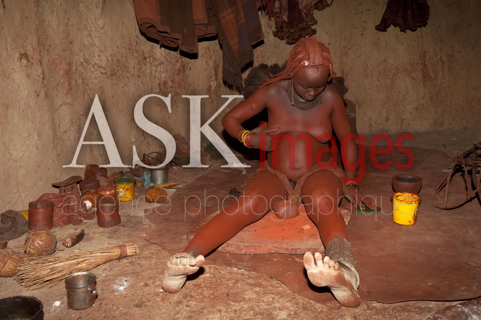 DescriptionLES HIMBA sont un peuple de pasteurs nomades de Namibie. Ils se parent volontiers de colliers en cuir et d'anneaux en laiton et enduisent leur peau d'une pate a base de beurre et de bois rouge (baphia nitida) *** THE HIMBA are a nomadic people of Namibia. They adorn themselves with leather collars and brass rings and coat their skin with a paste made of butter and red wood, (baphia nitida), Namibia.