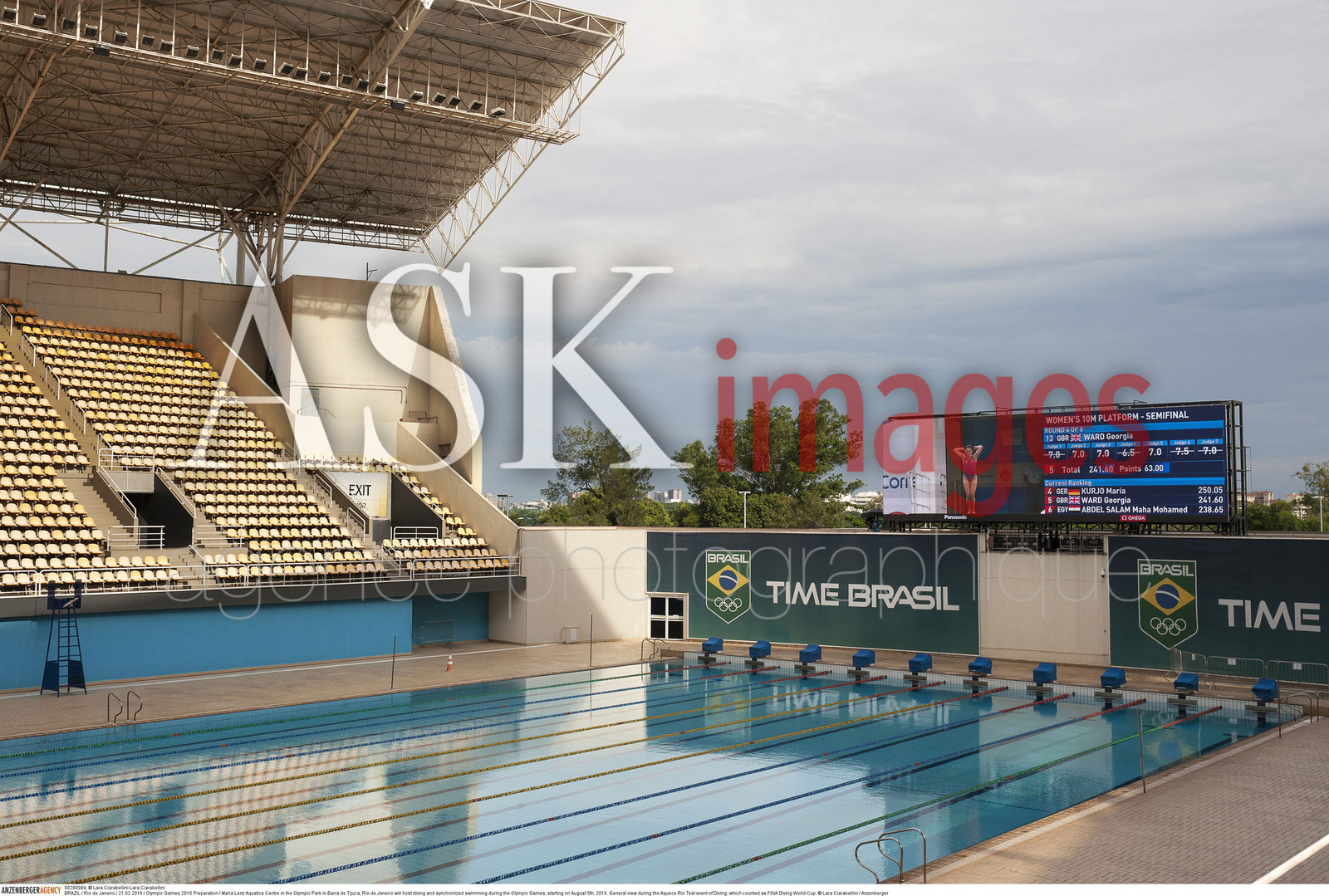 | Description | BRAZIL / Rio de Janeiro / 21.02.2016 / Olympic Games 2016 Preparation / Maria Lenz Aquatics Centre in the Olympic Park in Barra de Tijuca, Rio de Janeiro will host diving and synchronized swimming during the Olympic Games, starting on August 5th, 2016. General view during the Aquece Rio Test event of Diving, which counted as FINA Diving World Cup...© Lara Ciarabellini / Anzenberger |