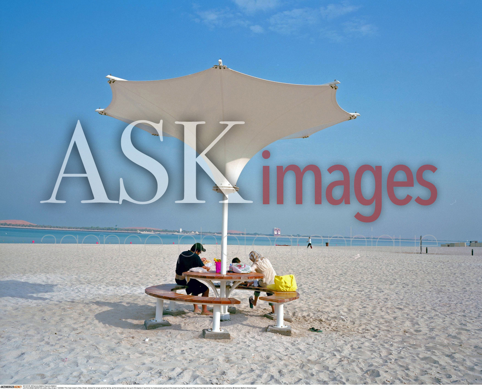 | Description | UNITED ARAB EMIRATES (UAE) / Abu Dhabi / The main beach of Abu Dhabi, divided for single and for family, as the temperature rise up to 50 degree in summer no many people going on the beach during the day and if they do they have to hide under a futuristic umbrella..© Daniele Mattioli / Anzenberger/ASK Images |