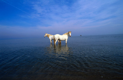 • France, Camargue, Les Saintes Maries de la Mer, The horses of gardians (the cowherds)..