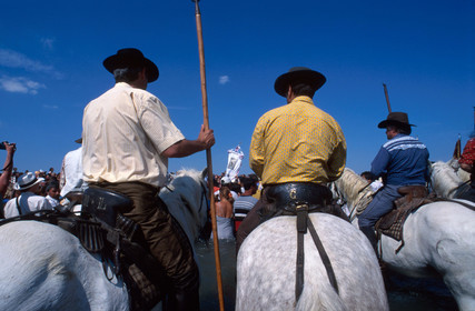 • France, Camargue, Les Saintes Maries de la Mer, Gipsy festival, May, gardians (the cowherds).