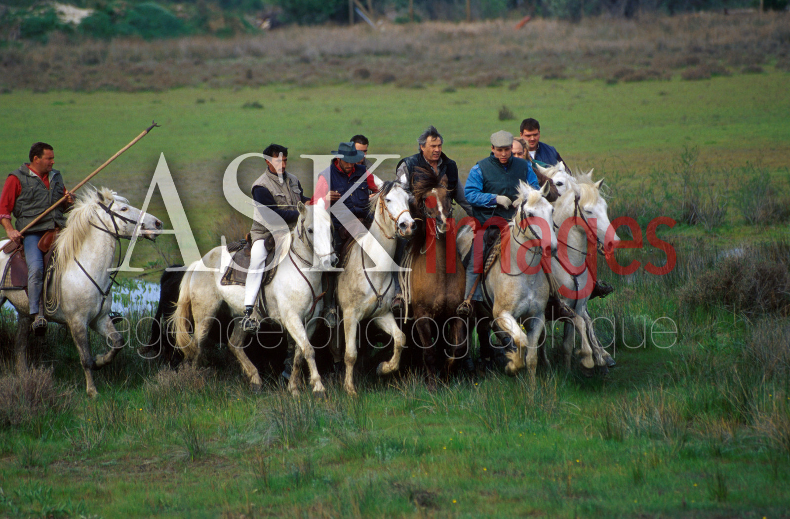 | Description | France, Camargue, Les Saintes Maries de la Mer, gardians (the cowherds) with bulls.. |