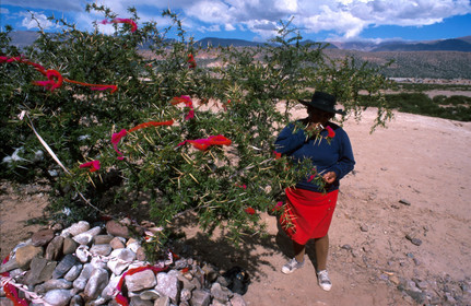 • Woman in front of Apacheta, Marcada ritual, Humahuaca, Argentina.