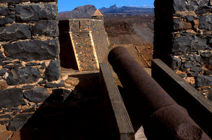 Sao Tiago, cannon on fortress of Sao Filipe in Cidade Velha, Cape Verde..