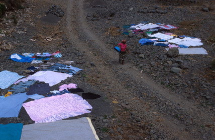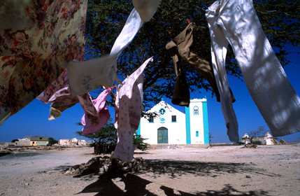 Sao Tiago, Drying of household linen near Achada de Monte, Cape Verde..