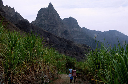 Sao Antao, Children in sugar-cane field, Ribeira de Paul, Cape Verde..