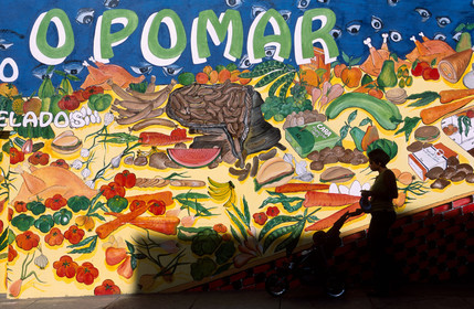 Sao Vicente, Woman in front of groceries shop, Cape Verde..