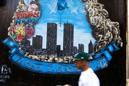 USA, New York. A murales which remember the Twin towers before the 9_11 in Soho District.