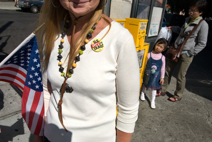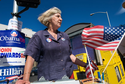 USA, California, San Francisco. A woman is calling people to register in order to have the possibility to vote for the democratic's primaries which designed the new representative for the american presidency in the next year election.