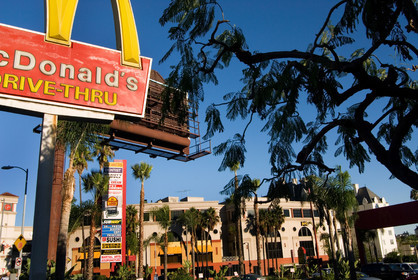 USA, Los Angeles. Signs of a Macdonald in Sunset boulevard.