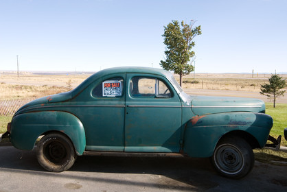 USA, Utah, Little America. An old car on sale on the road to west.