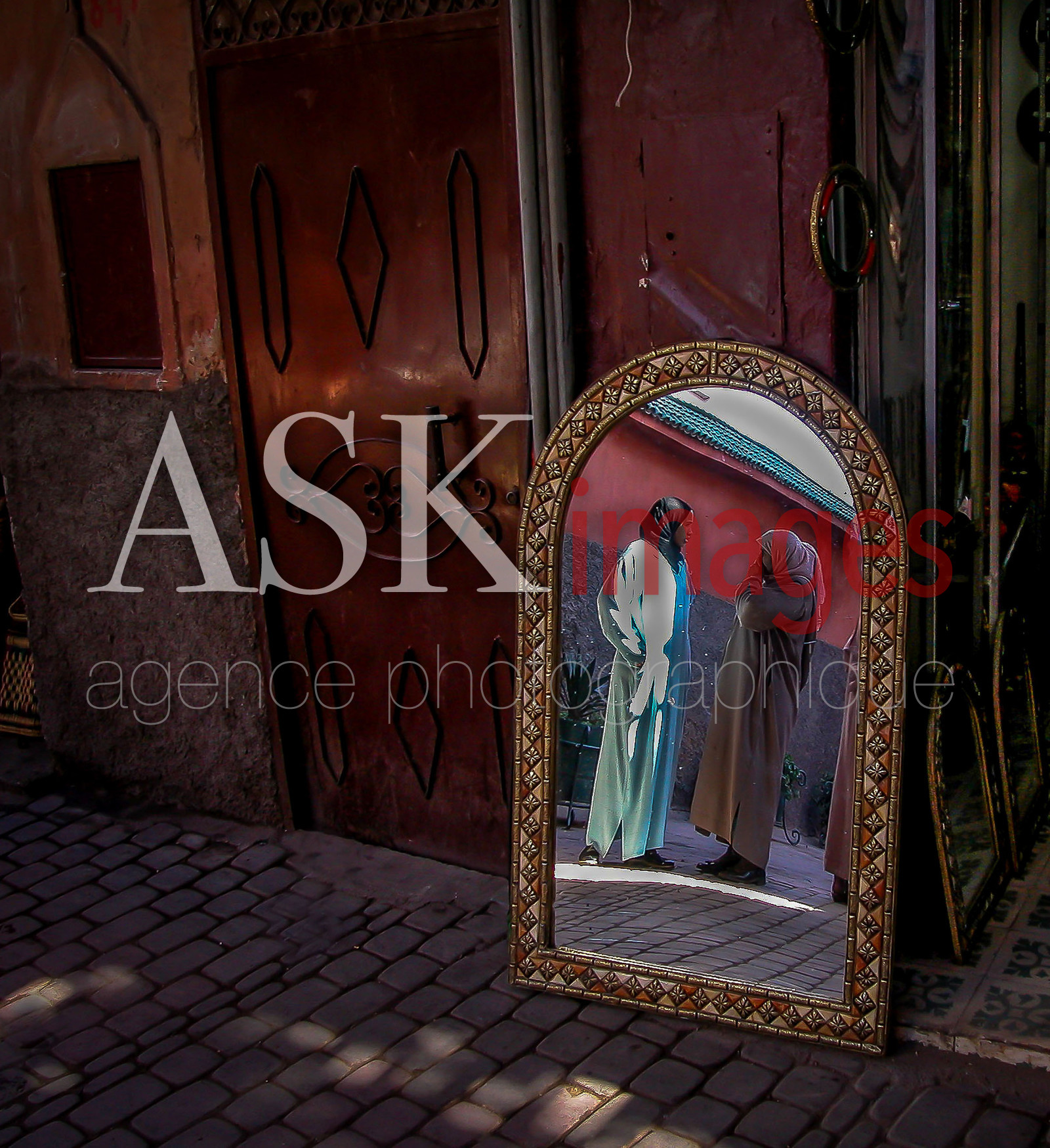 | Description | Women talking together in the reflection of the mirror, Medina of Marrakech, Morocco |