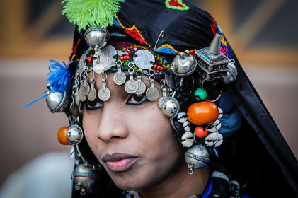 Portrait of a Moroccan woman in traditional costumes and jewelery, Morocco