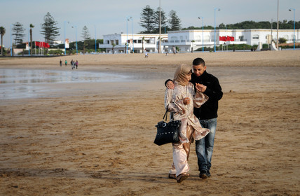 Moroccan couple on the beach of El-Jadida, Morocco