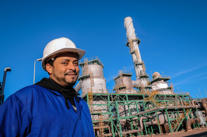 Moroccan worker on the site of the plant of Phosphates of Jorf Lasfar, Morocco