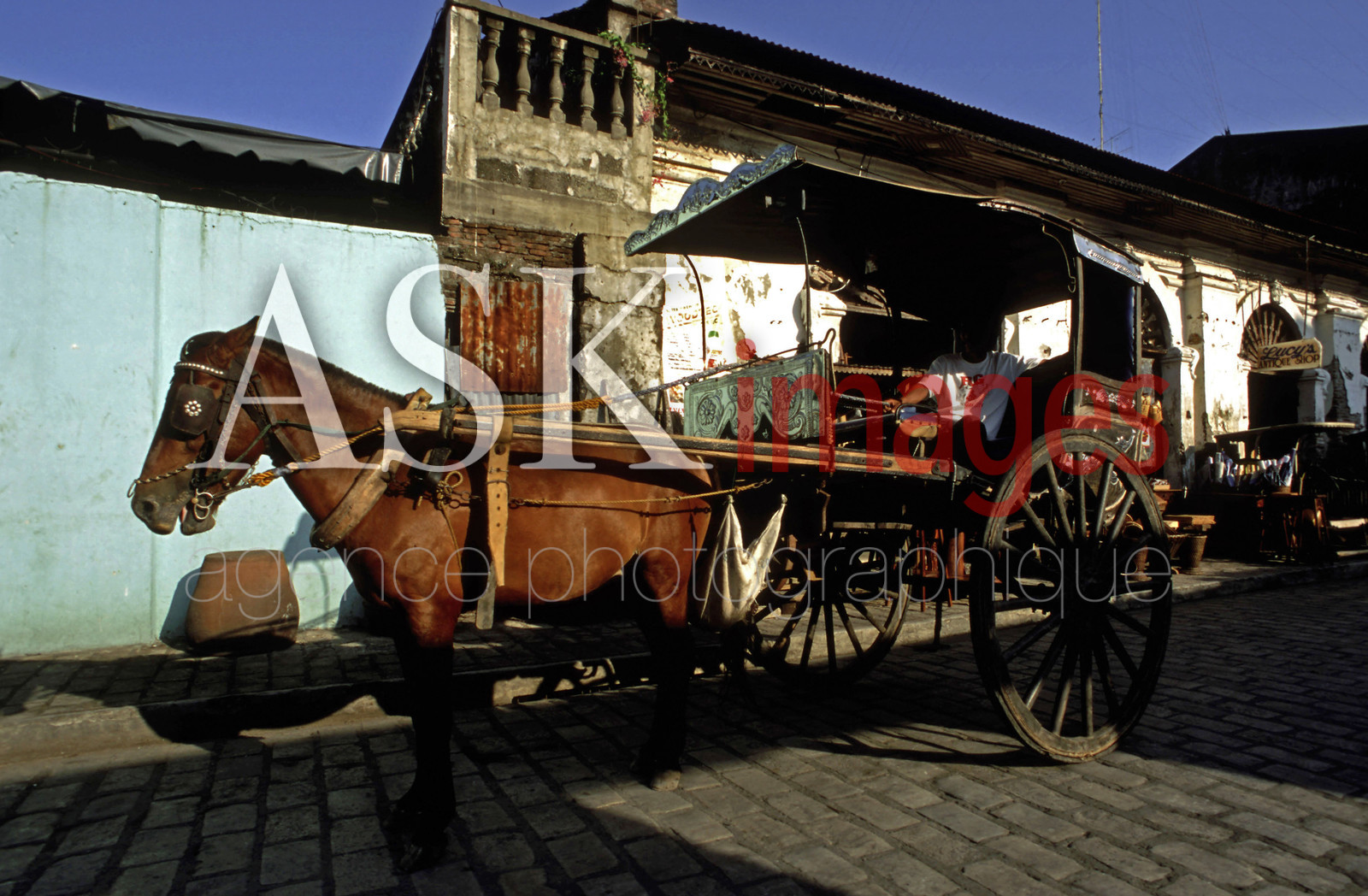 DescriptionKalesa ride, horse carriage, Crisologo Street, Ilocos, Vigan, Philippines, A kalesa (also caritela/karitela) is a horse drawn calash used in the Philippines, It was one mode of transportation introduced to the islands in the 18th century by Spanish colonisers, and was initially reserved for only nobles and high-ranking civic officials.