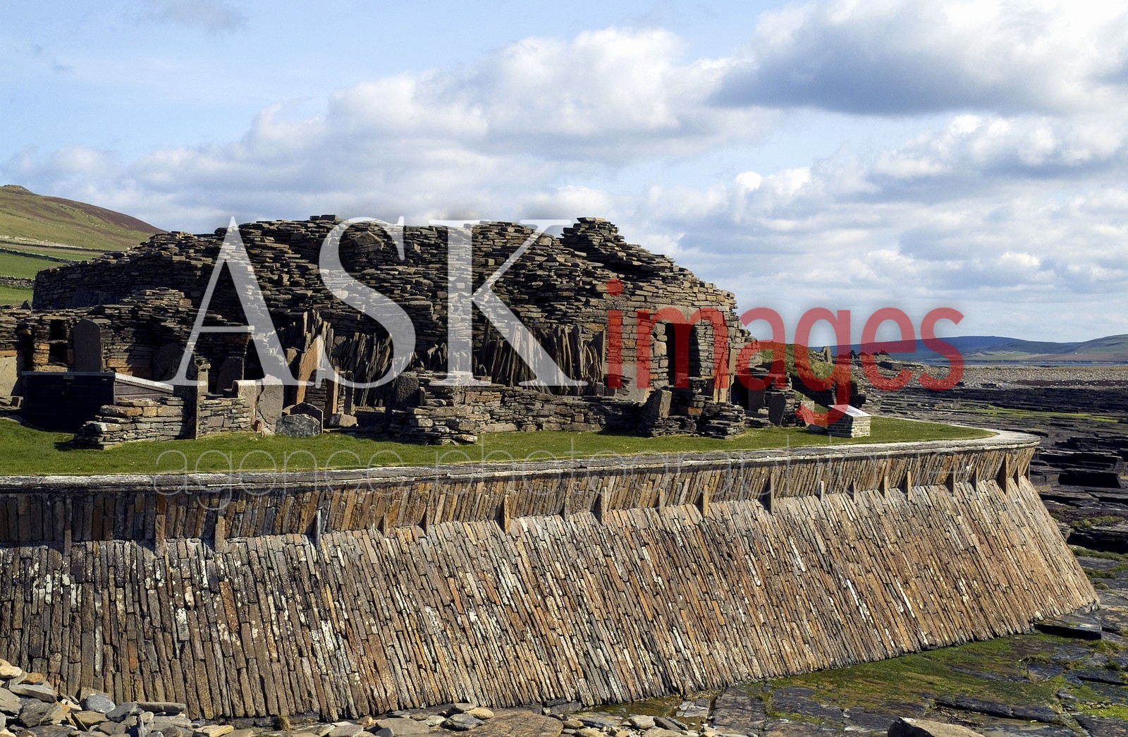 | Description | Rousay Orkney Scotland Midhowe Broch Iron age Fortified Defensive Dwelling Stronghold Eynhallow Sound shore. |