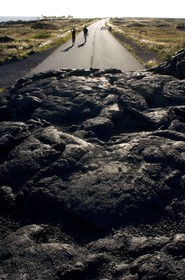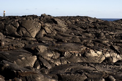 End of the Road, Chain of Craters Road, Hawai'i Volcanoes National Park, Big Island, Hawaii, USA. Black lava at the end of the Crater Road. Hawai'i Volcanoes National Park. Big Island. Hawaii.