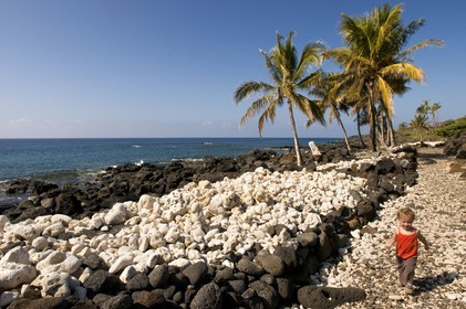 Children in Lapakahi State Historical Park, where Hawaiian fishermen lived for centuries until the place was left without water. Big Island. Hawaii. USA.