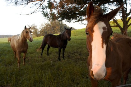 Horses near of one of the many ranches around Waimea. Big Island. Hawaii. USA.