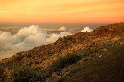 Summit of Puu Ulaula. Maui. Hawaii. Summit of Puu Ulaula with departing several trekings foot or horseback to descend 900 meters into the bowels of the volcano ash filled paths. Haleakala Puu Ulaula Summit Hill